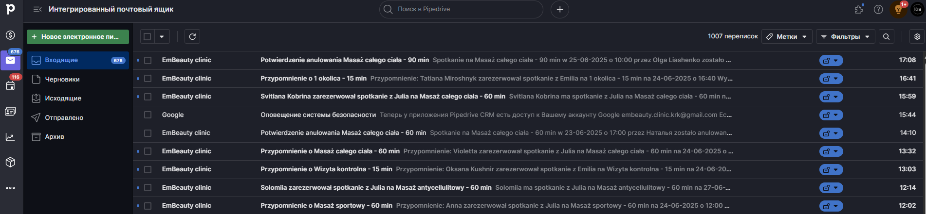 - The platform allows clients to book services at a convenient time, and all information is automatically transferred to Pipedrive.