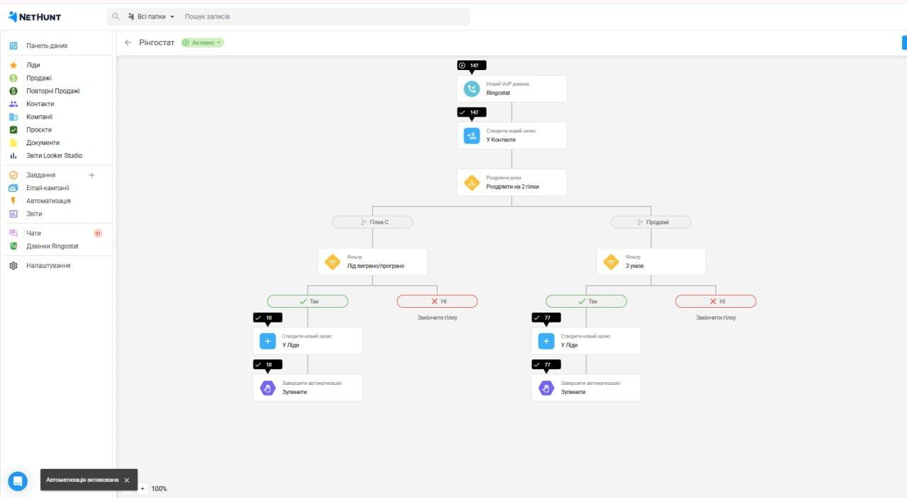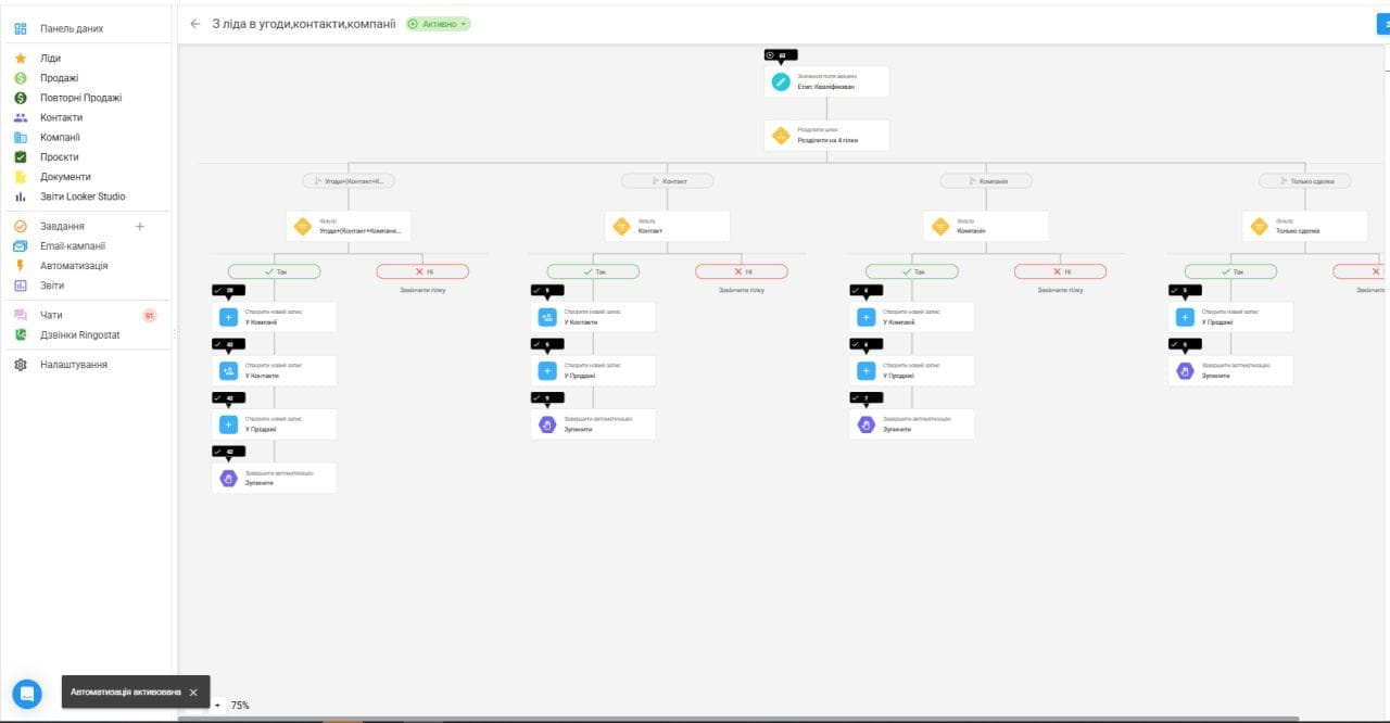 Далее были настроены ключевые автоматизации, которые снизили нагрузку на команду и ускорили обработку заявок.