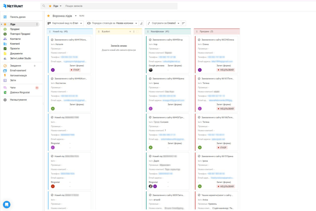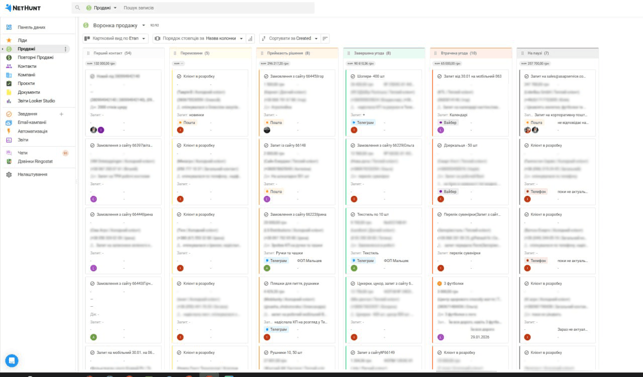 Далее выполнили настройку CRM NetHunt. Система была полностью адаптирована под бизнес клиента и его структуру.